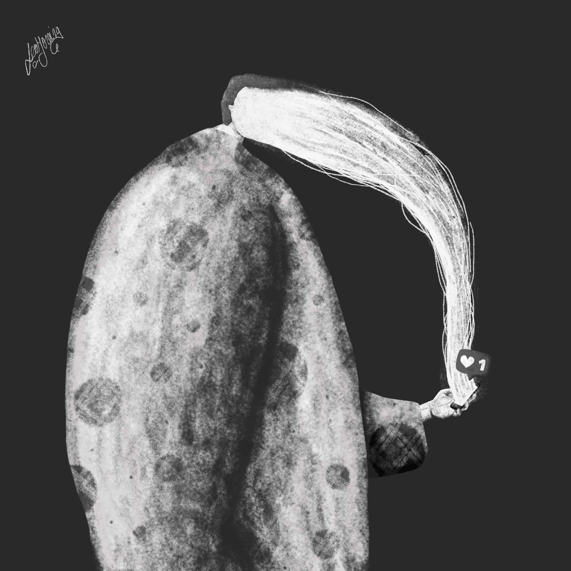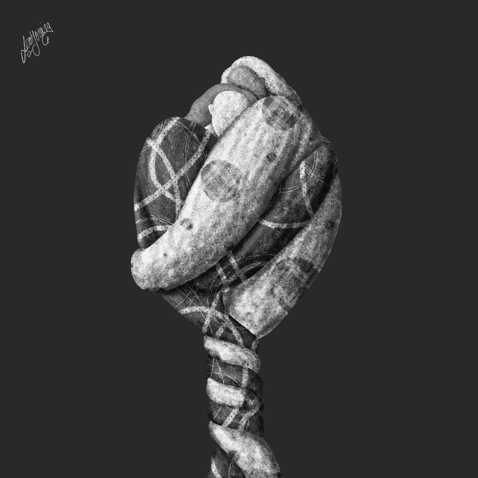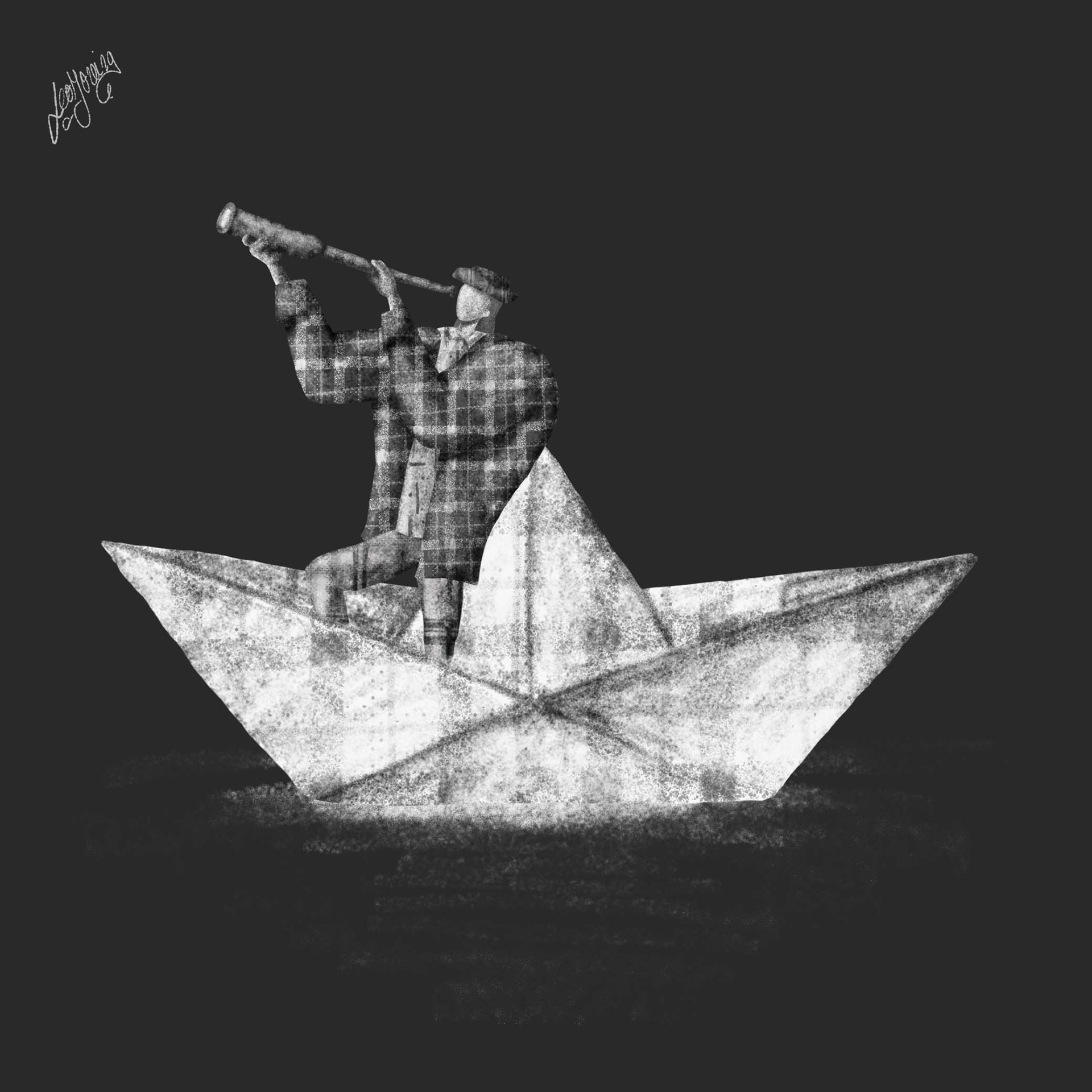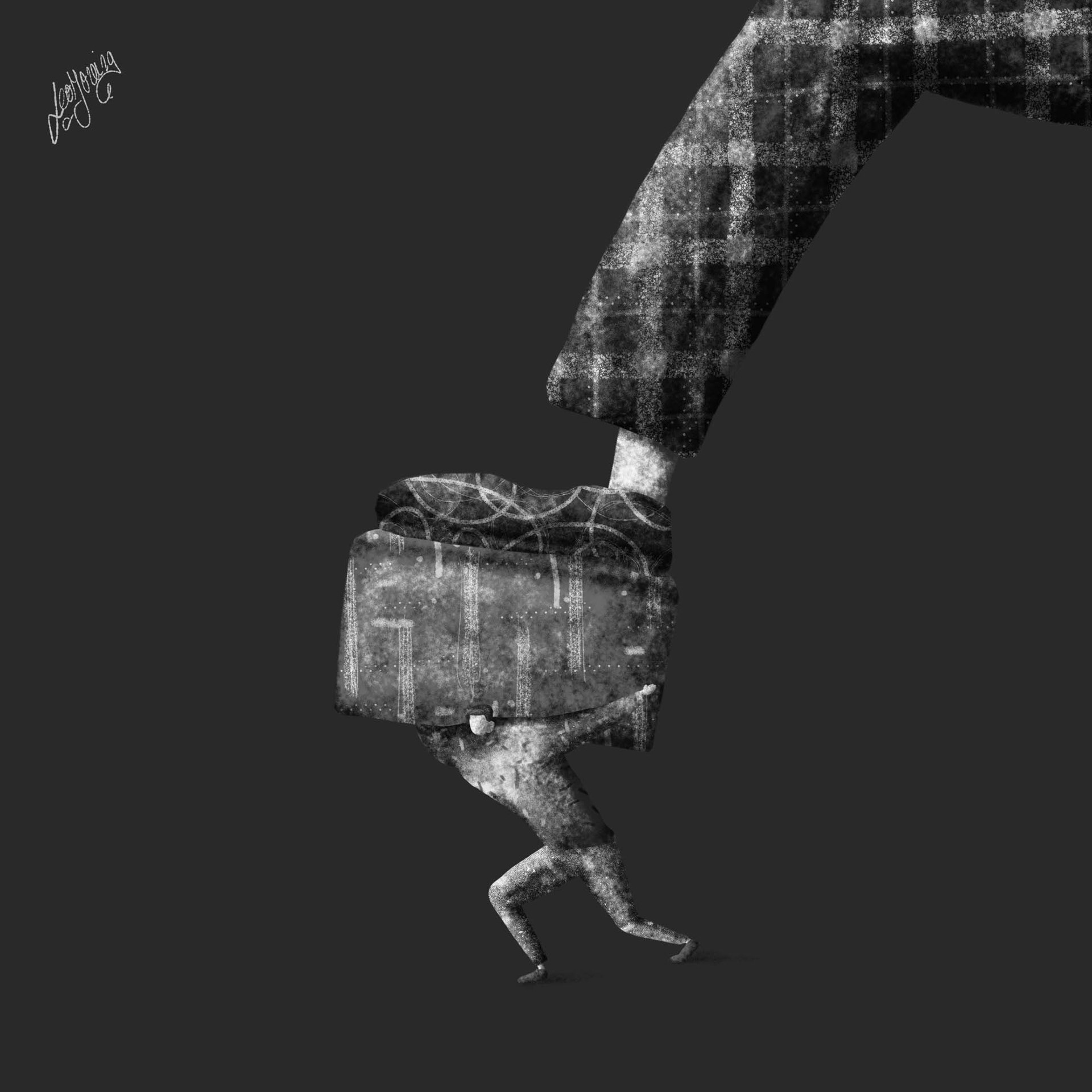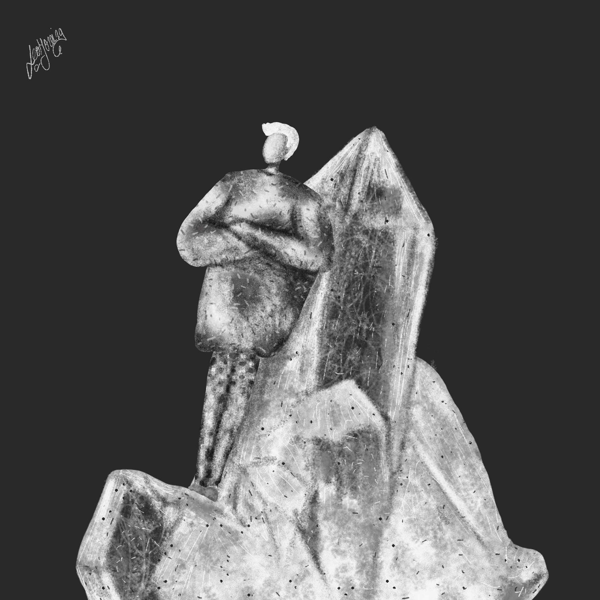 Serie de ilustraciones y personajes desarrollados en blanco y negro.